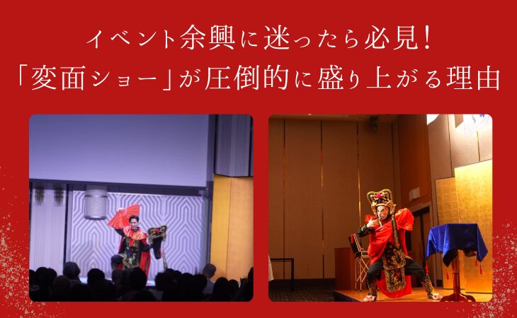 近距離で魅せるテーブルマジックや、中国伝統芸能『変面』にも対応。