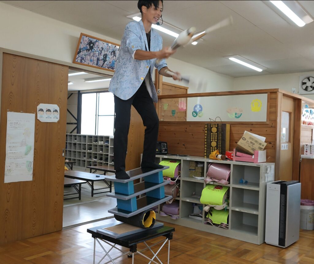 お子様からご年配の方まで楽しめる内容です。目で見て分かりやすいジャグリングや、ドキドキのバランス芸まで!