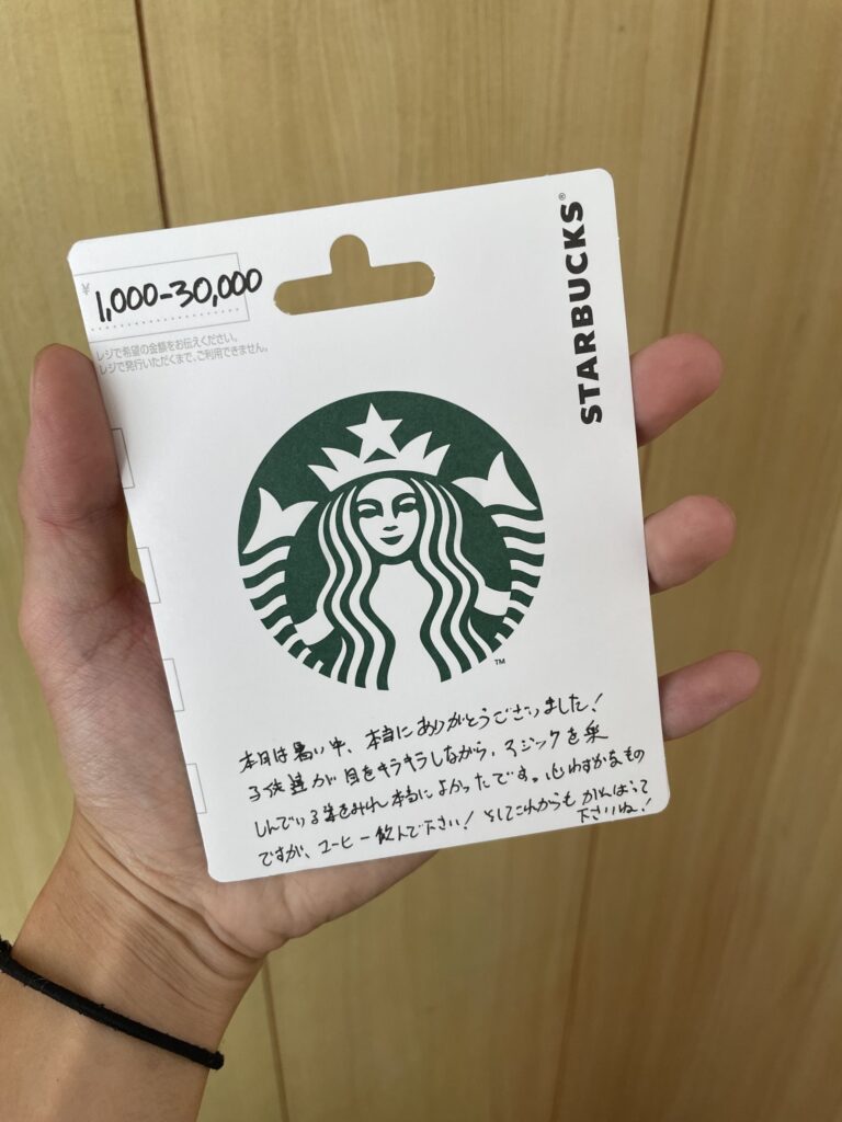 さらに、素敵なメッセージ付きのスターバックスカードもいただき、感謝の気持ちでいっぱいです。