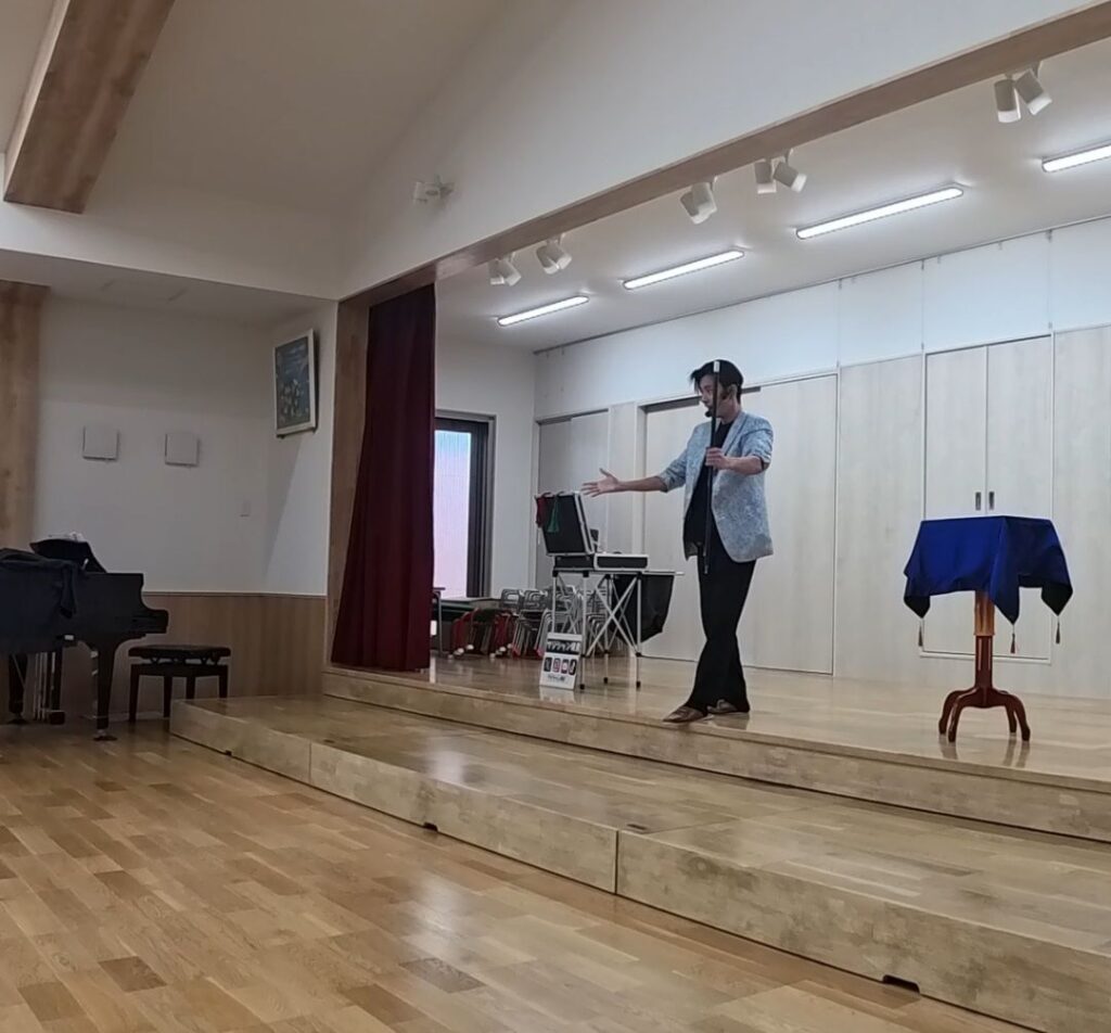 はるき京都市南区にある幼稚園様にて、幼稚園向けマジックショーをお届けいたしました。今回は園児の皆さまに楽しんでいただけるよう、視覚的に分かりやすく、音楽と連動したパフォーマンスを中心に構成したステージです。