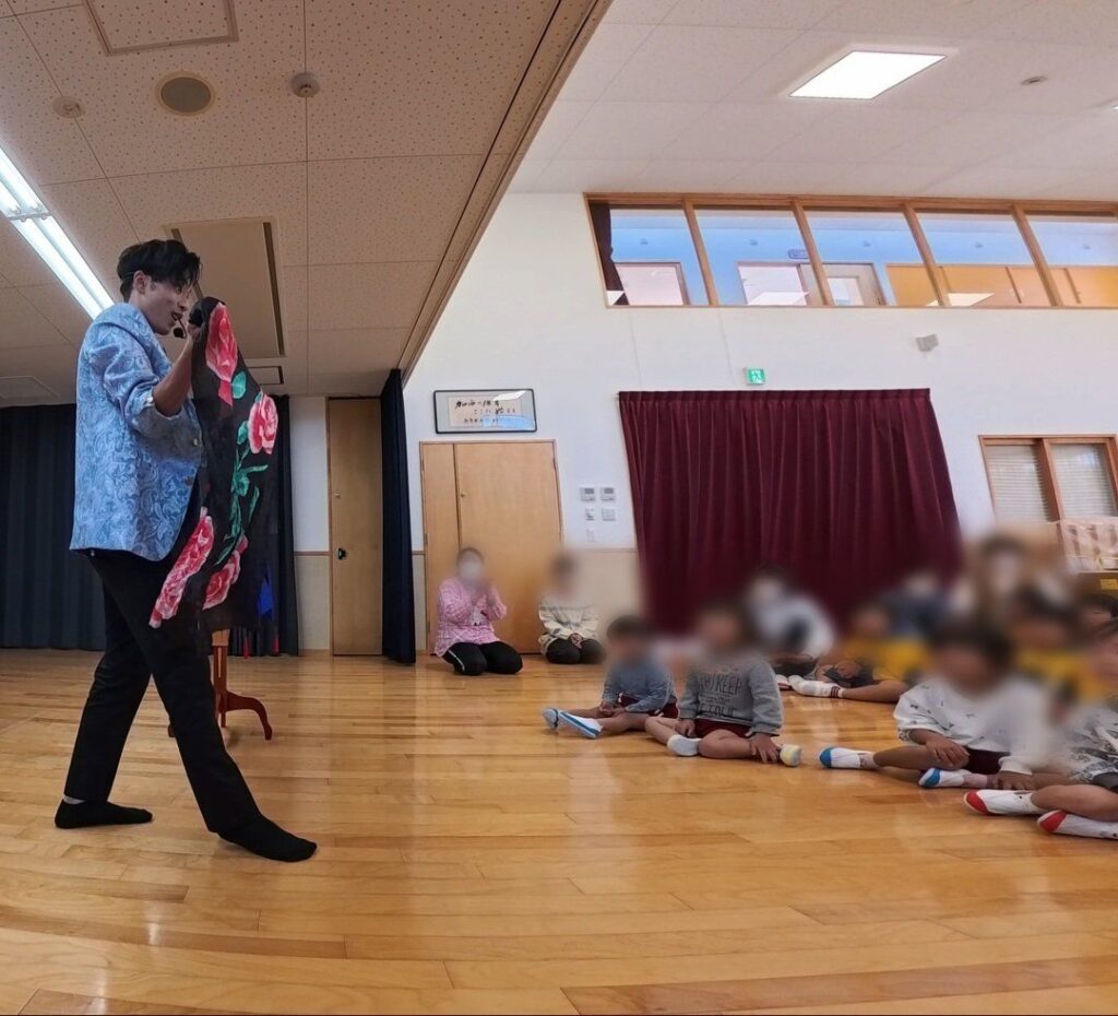 ショー前には先生方と軽く打ち合わせを行わせていただき、子どもたちの年齢層や雰囲気に合わせて内容を調整しました。