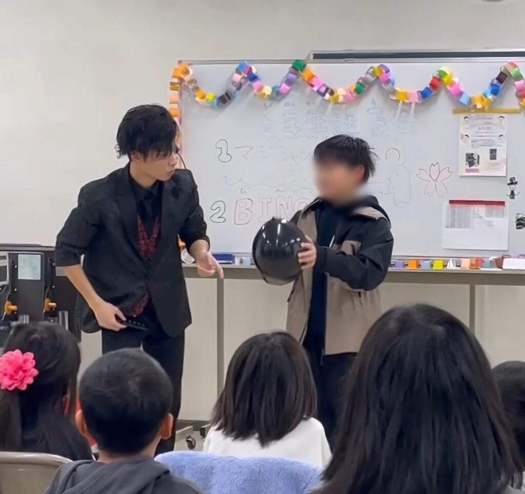 中でも、催眠術は6年生にかけましたがすごく驚いていて保護者の方からもお褒めのお言葉を頂きました。