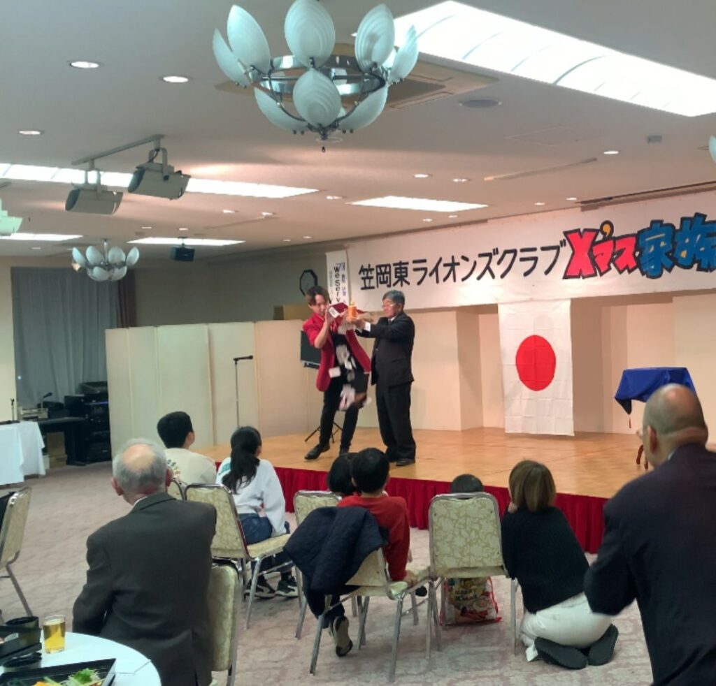 晴貴先日、岡山県笠岡市にて開催された笠岡東ライオンズクラブ様の忘年会にて、マジシャンを派遣させていただきました!