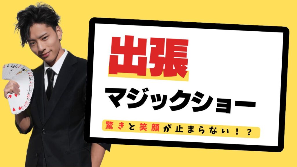 - 出張マジックとは、会場にマジシャンが訪れて直接マジックを披露するパフォーマンスのことです。