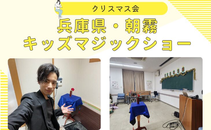 今回は、兵庫県・朝霧エリアの公民館にて開催されたクリスマス会でのキッズ向けマジックショーをお届けさせていただきました。お子様がメインのイベントで、約70名ほど...
