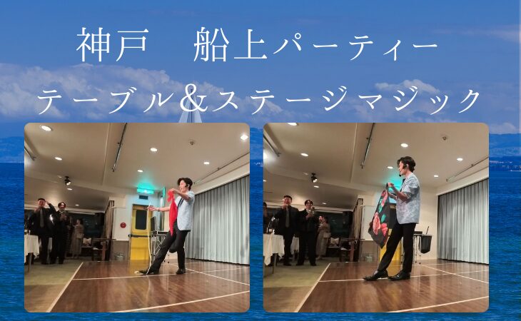 今回は、神戸で開催された船上パーティーにて、マジックショーをお届けさせていただきました。新入社員の皆さまが企画・運営されているパーティーで、当日は合計約500名... -